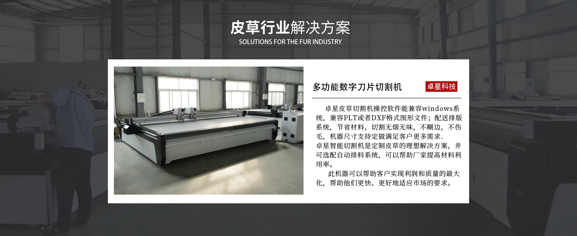 卓星皮草切割機操控軟件能兼容windows系統,兼容PLT或者DXF格式圖形文件;配送排版系統,節省材料,切割無煙無味,不糊邊,不傷毛,機器尺寸支持定做滿足客戶更多需求.