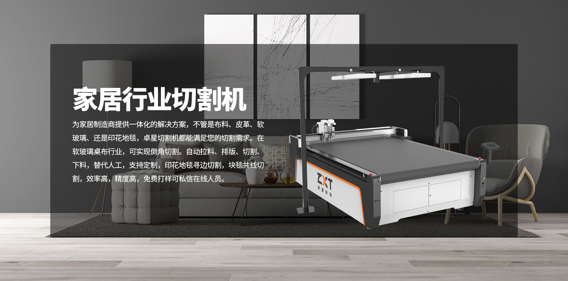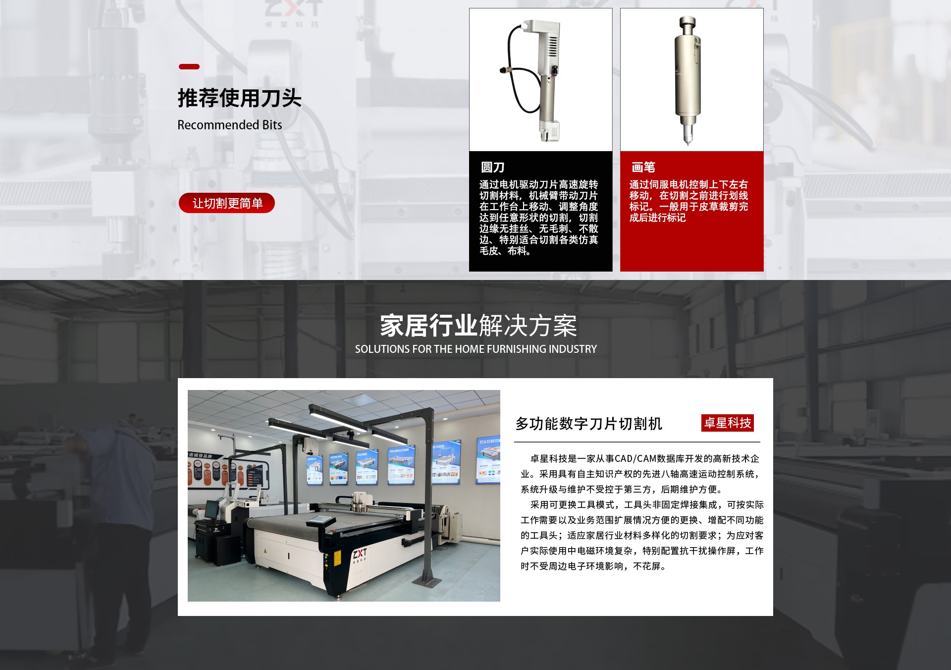 采用可更換工具模式,工具頭非固定焊接集成,可按實(shí)際工作需要以及業(yè)務(wù)范圍擴(kuò)展情況方便的更換、增配不同功能的工具頭;適應(yīng)家居行業(yè)材料多樣化的切割要求;為應(yīng)對(duì)客戶(hù)實(shí)際使用中電磁環(huán)境復(fù)雜,特別配置抗干擾操作屏,工作時(shí)不受周邊電子環(huán)境影響,不花屏;